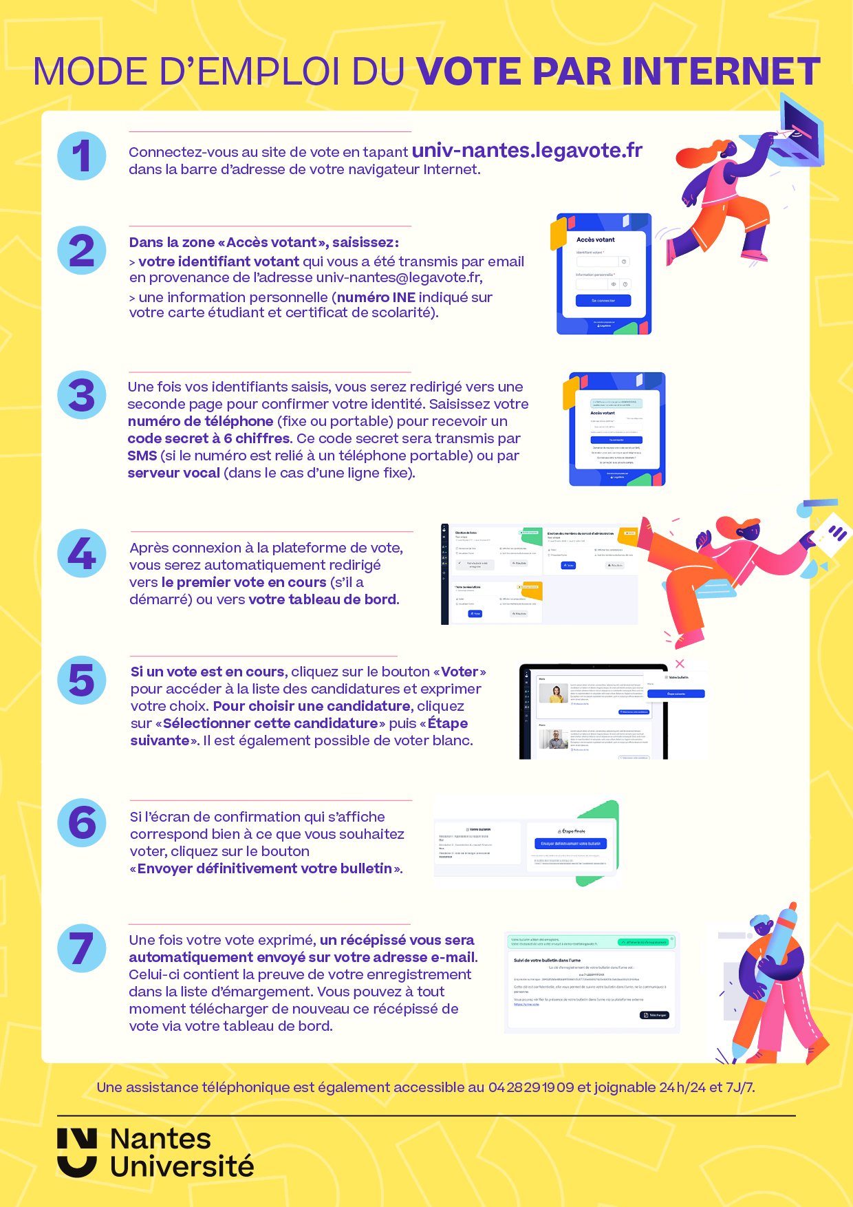 Pour toute demande, une assistance téléphonique est accessible au 04 28 29 19 09 et joignable 24h/24 et 7J/7. Pendant toute la durée des opérations électorales, le prestataire LegaVote assurera une supervision 24h/24 du bon fonctionnement du système de vote.