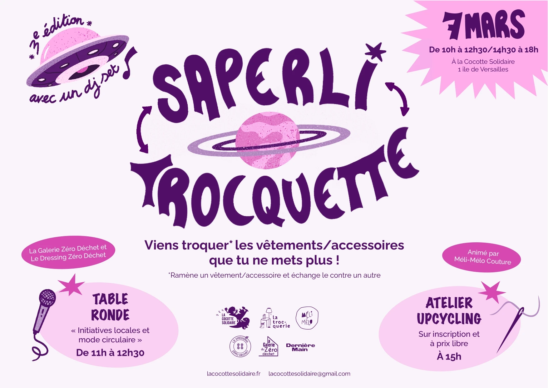 Troc de vêtement et d'accessoires, table ronde, atelier upcycling et DJ set : il y en a pour tous les goûts à La Cocotte solidaire ! Plus d'infos sur la page de l'évènement.